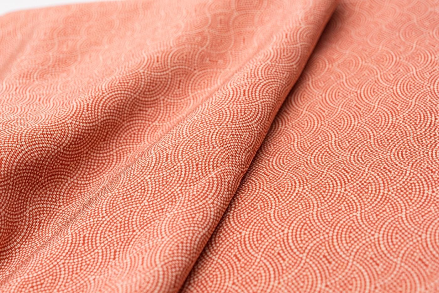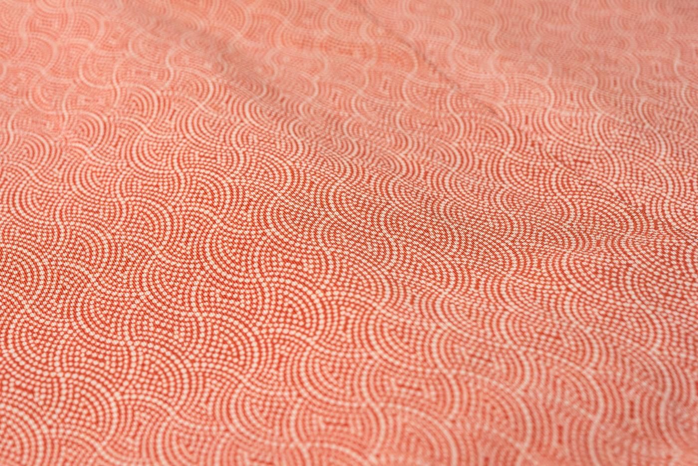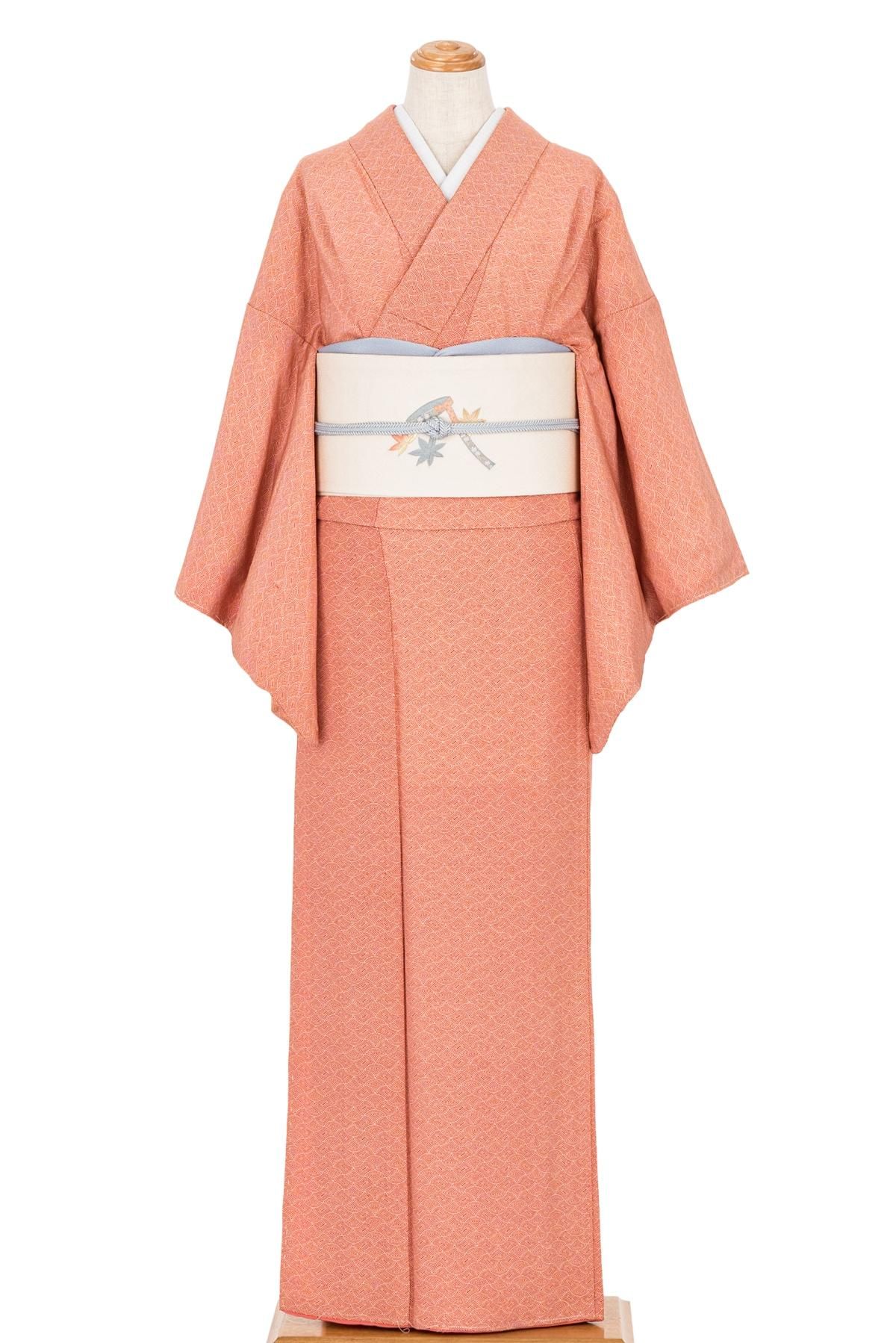 朱赤の地に変わり青海波模様を染めた江戸小紋の着物です。