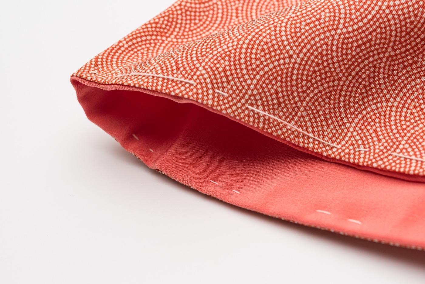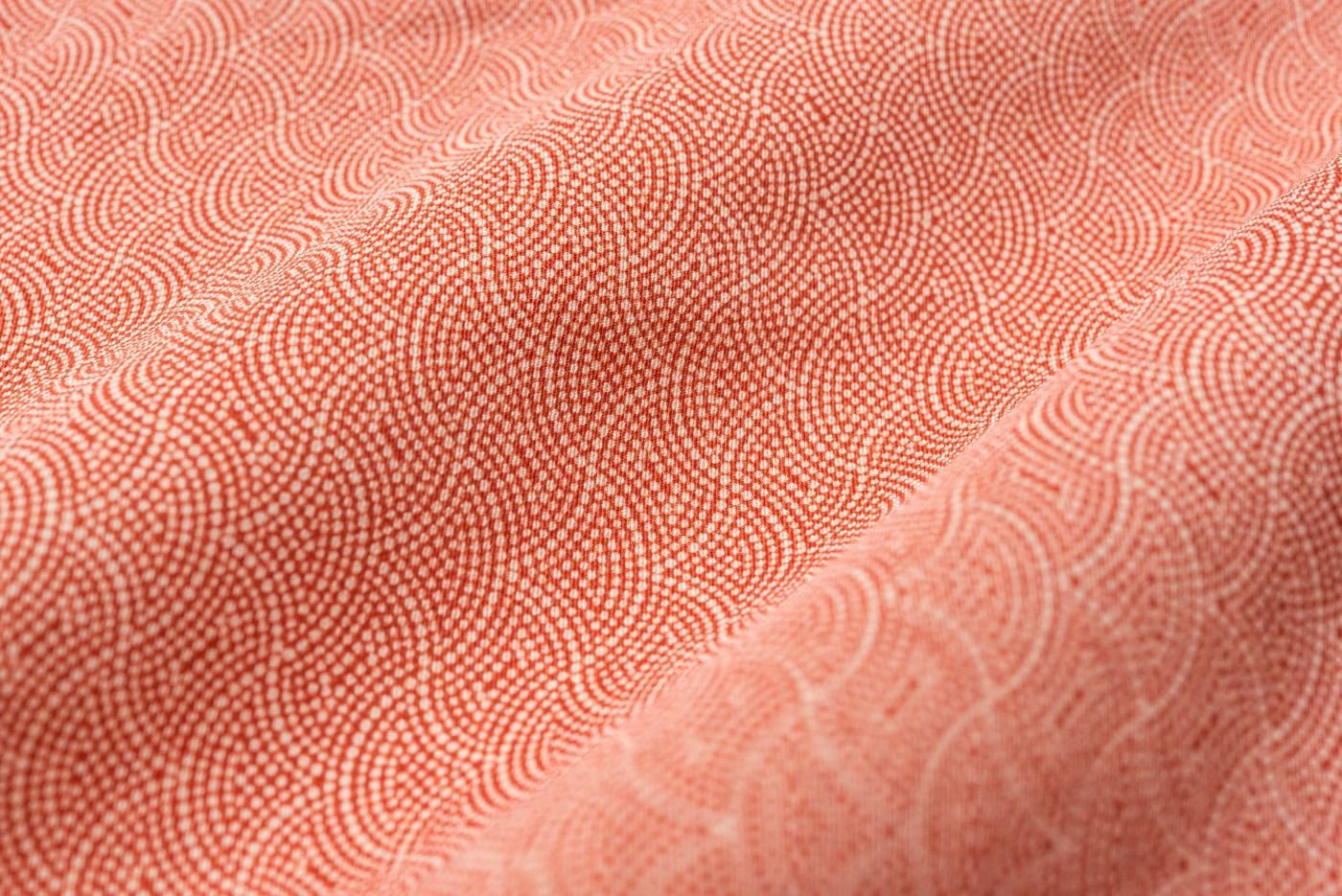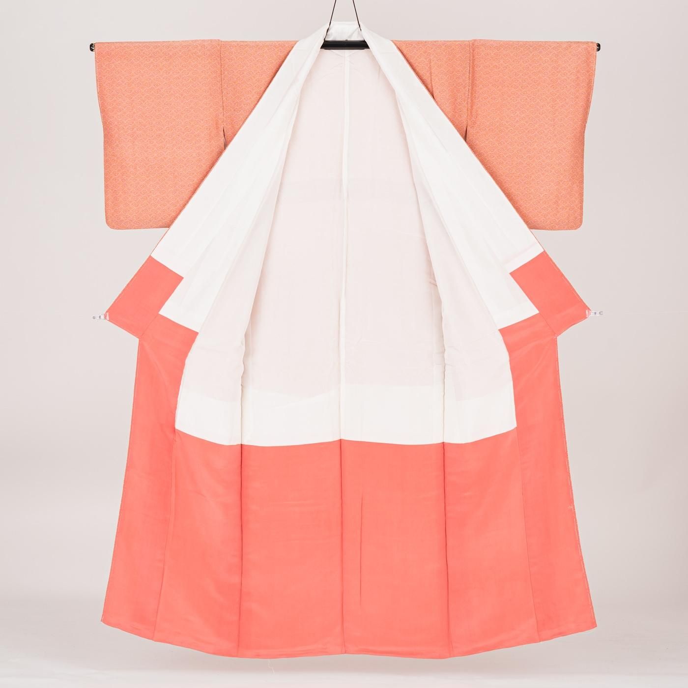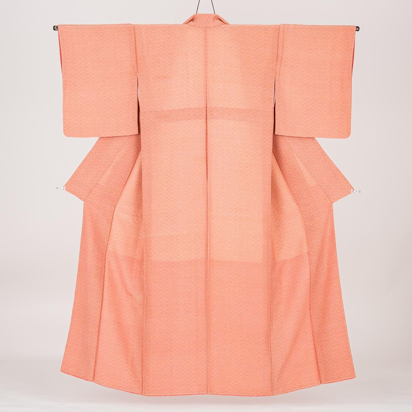 朱赤の地に変わり青海波模様を染めた江戸小紋の着物です。