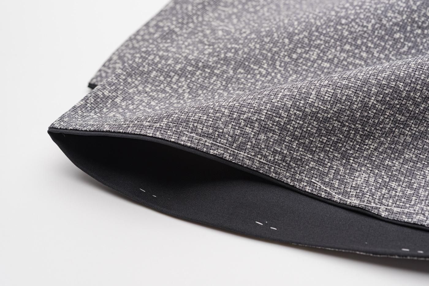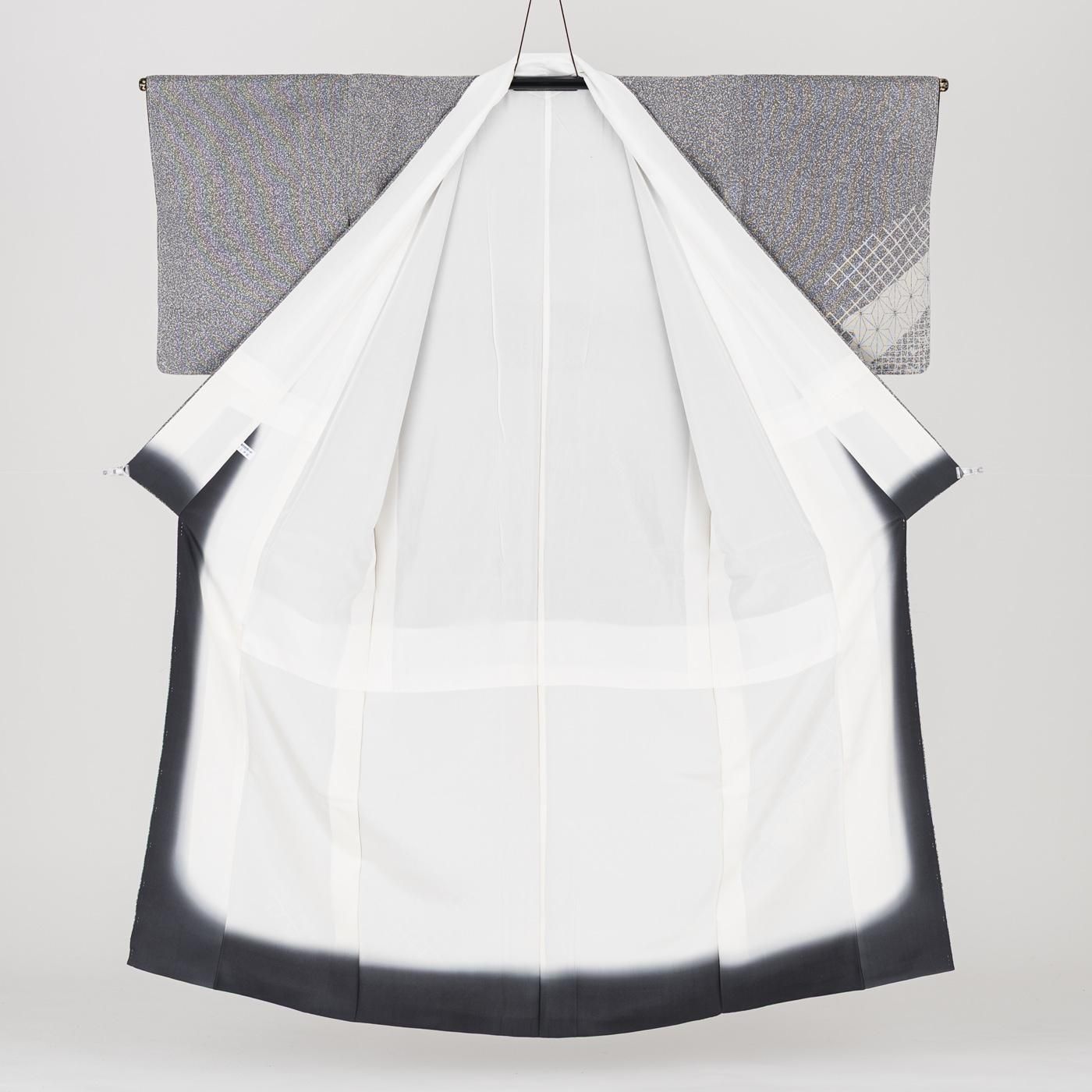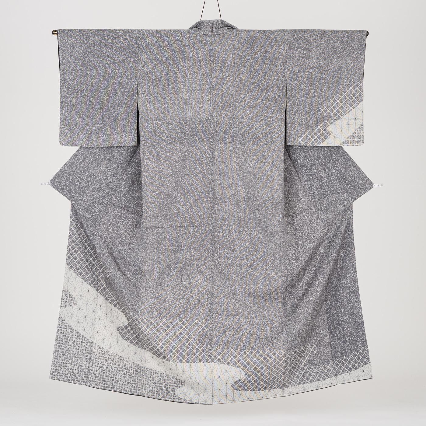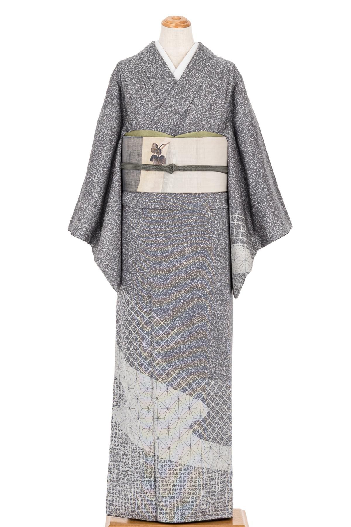 霞取りに格子や麻の葉模様が浮かぶお召の訪問着です。