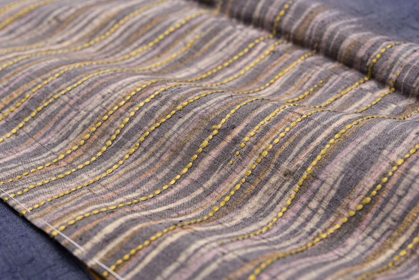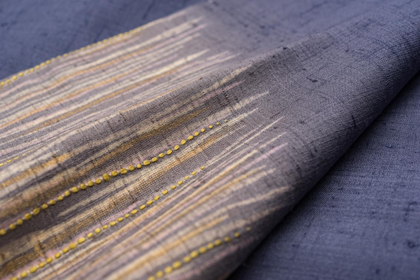暈しの中には揺れる縞模様と刺繍のアクセント。