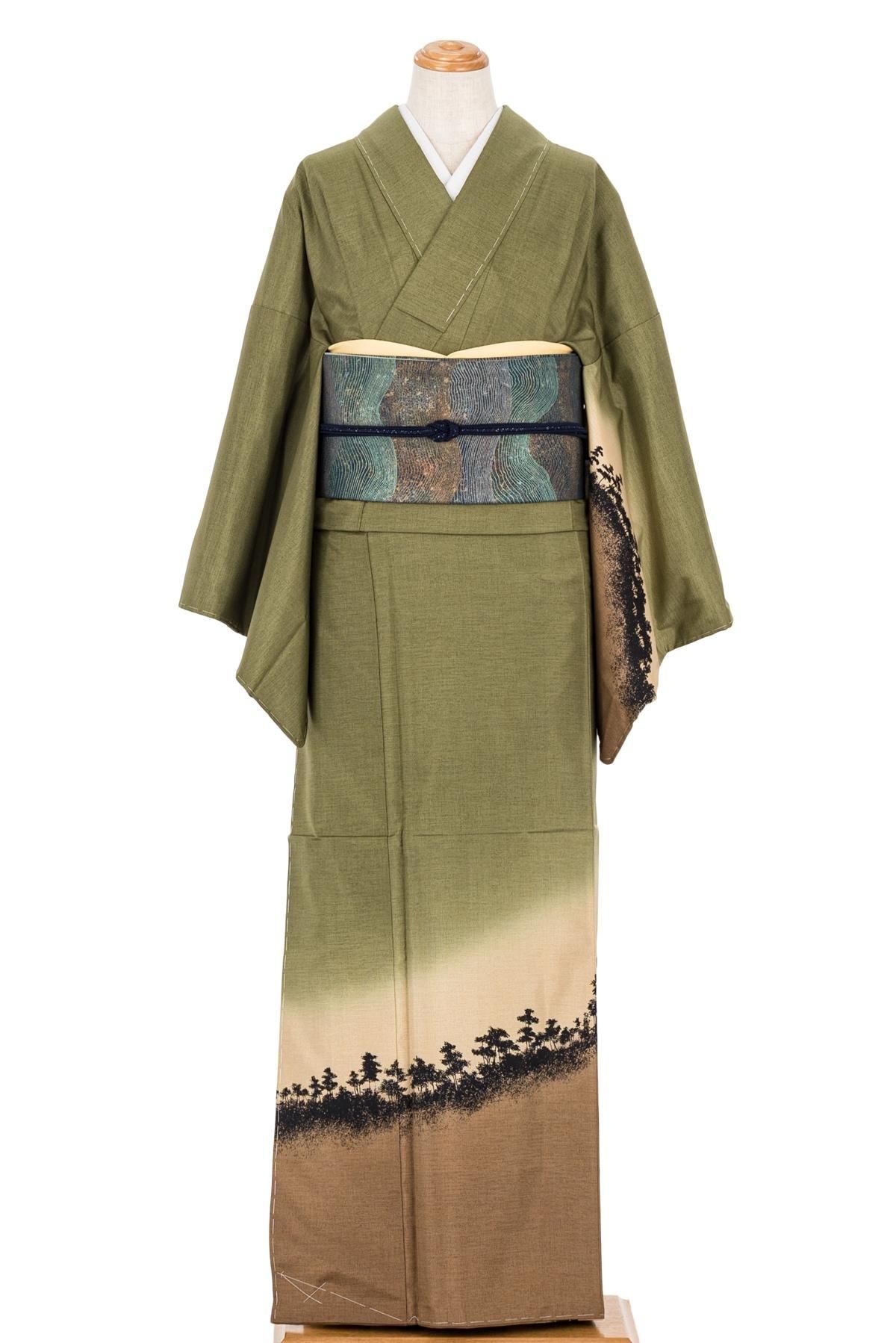 大島紬の地に木々並ぶ小道を描いた紬地の訪問着です。