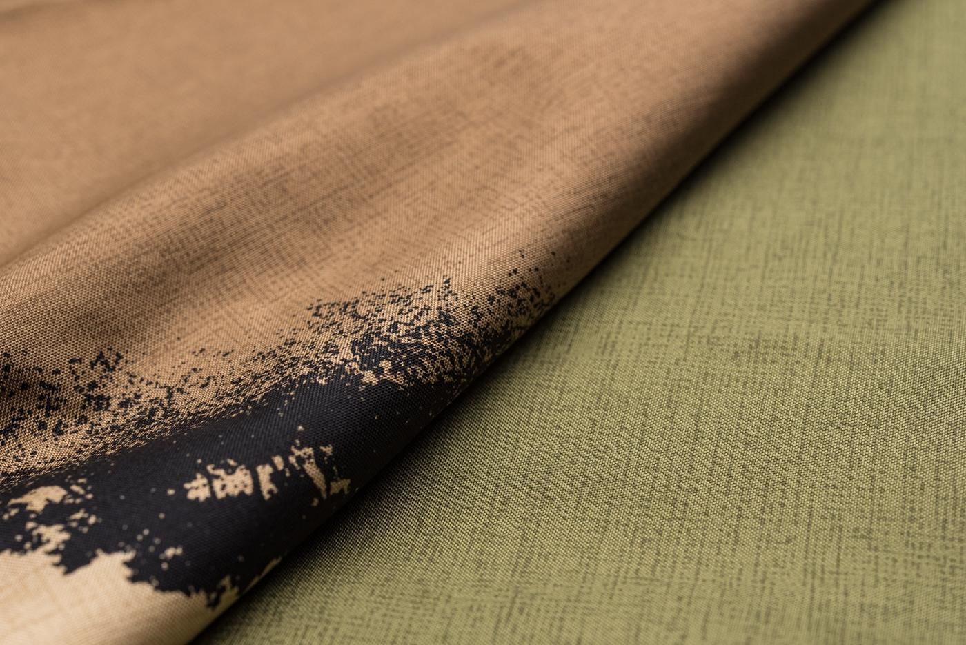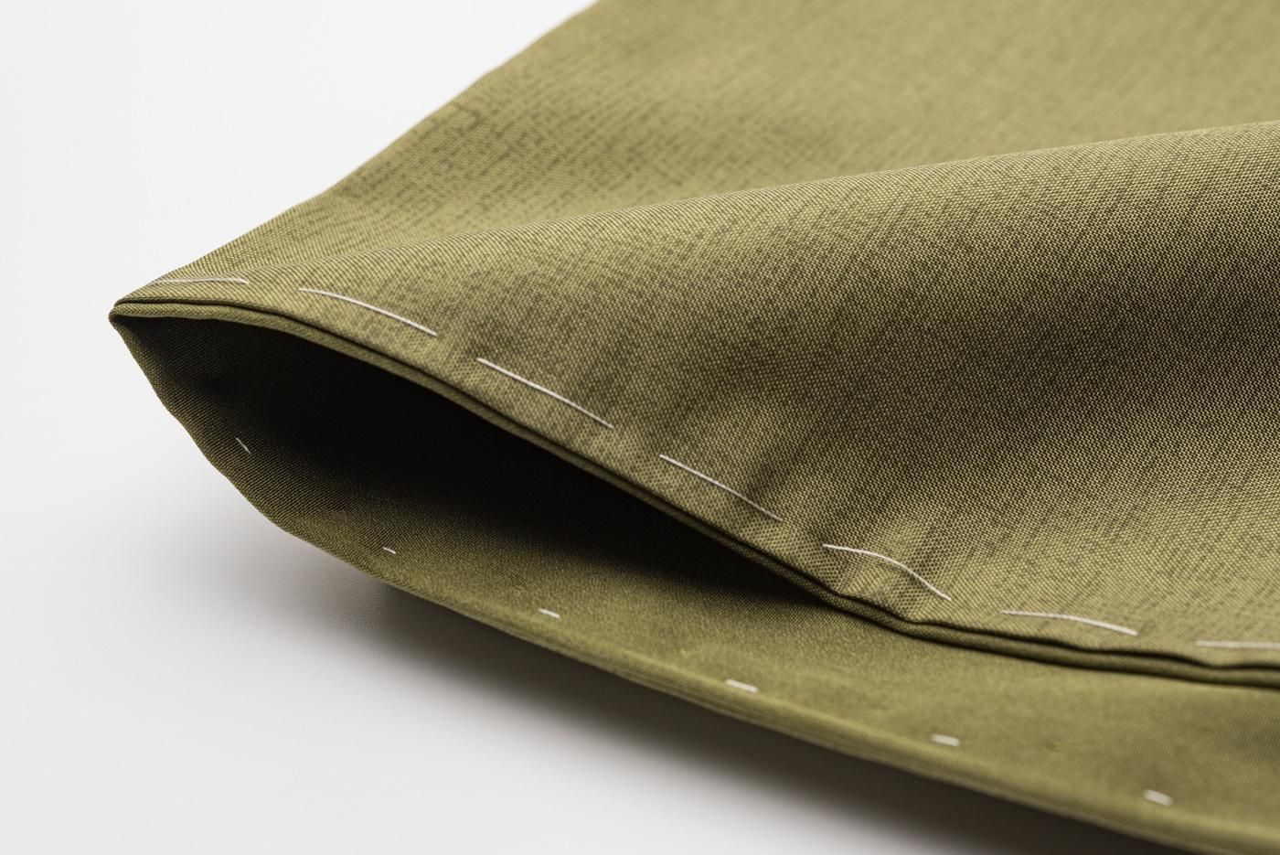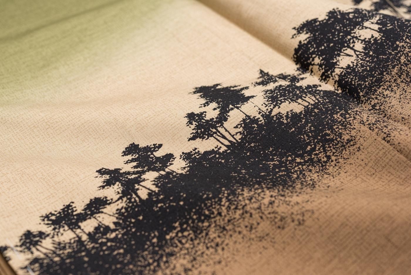落ち着いた抹茶色と裾の茶色を分断するように道を通したデザインは大胆でいて主張しすぎず、どこか奥ゆかしささえ感じさせます。