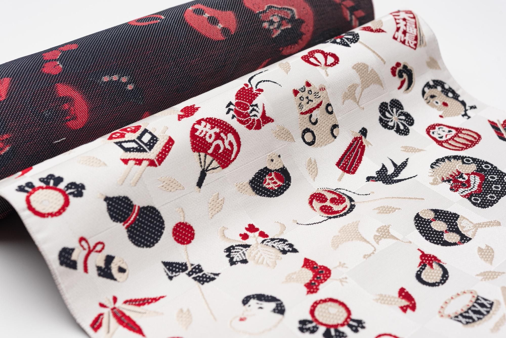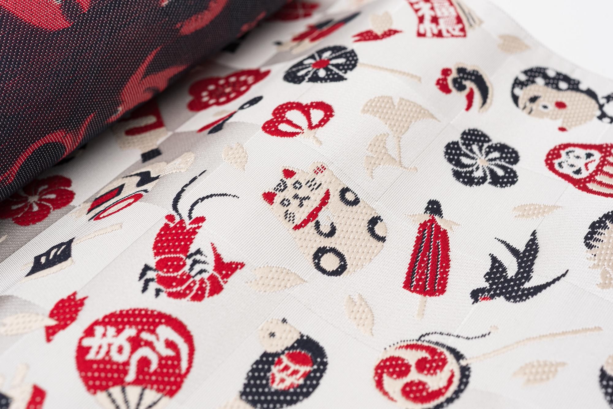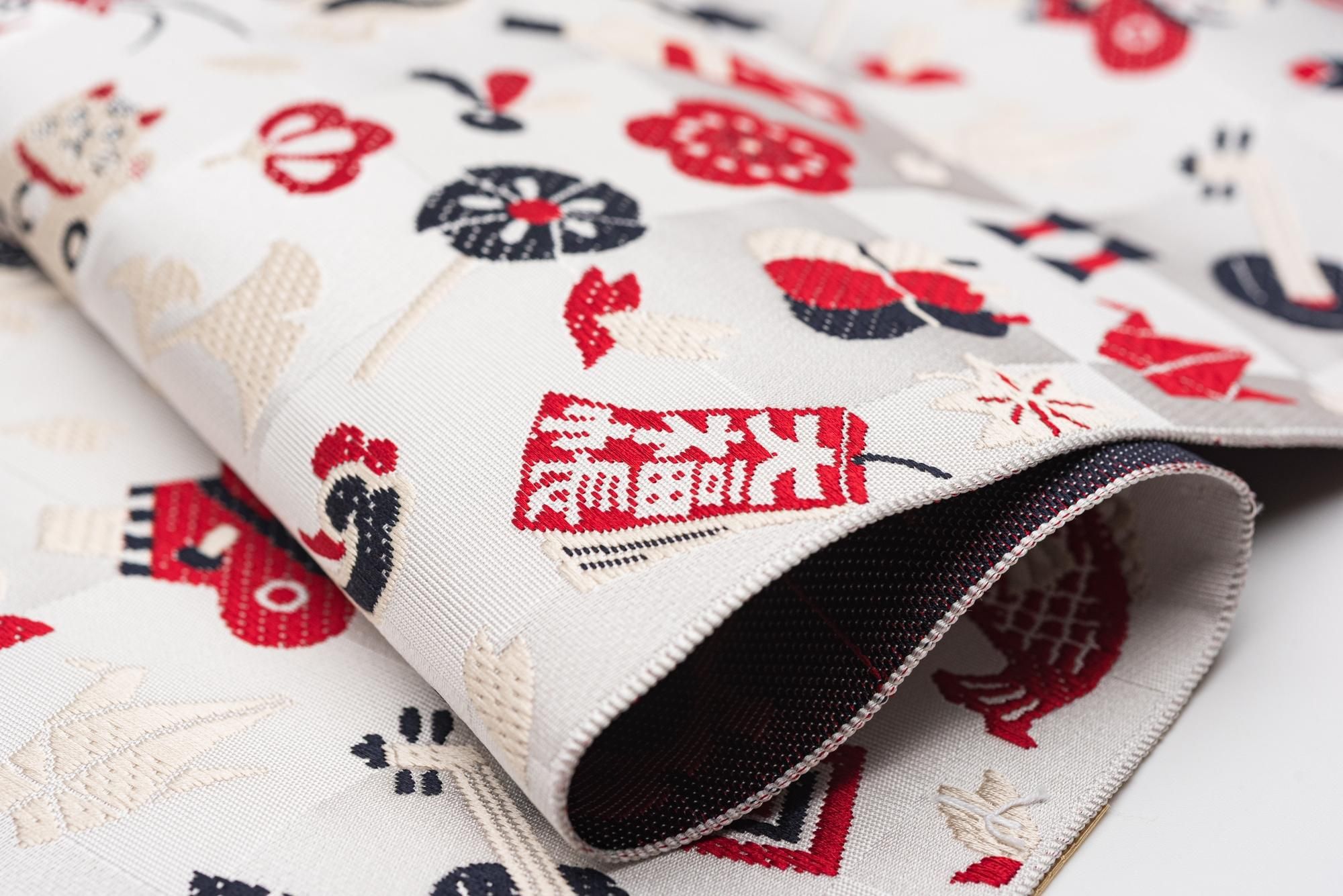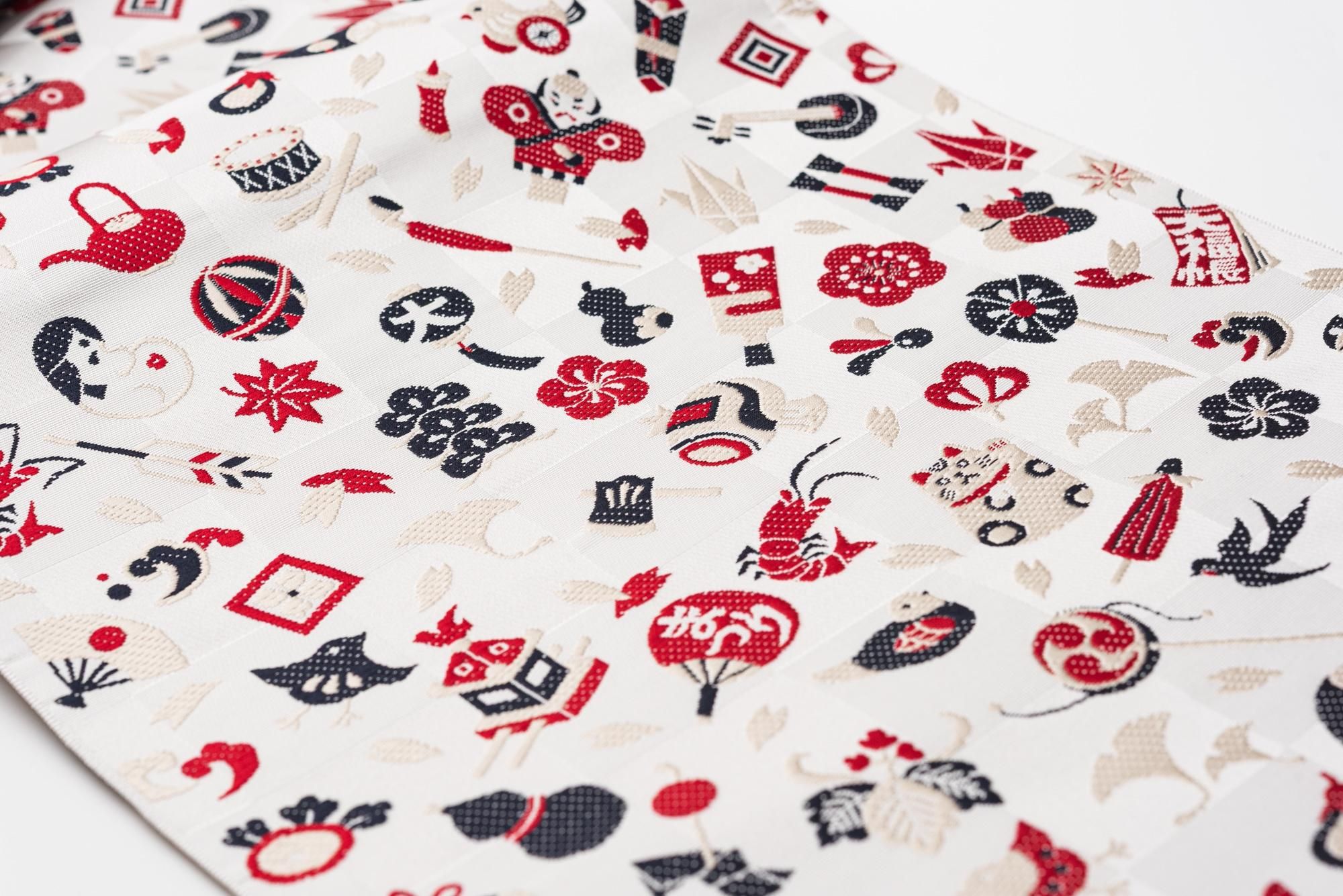 縁起物をぎゅっと詰め込んだ楽しい帯。