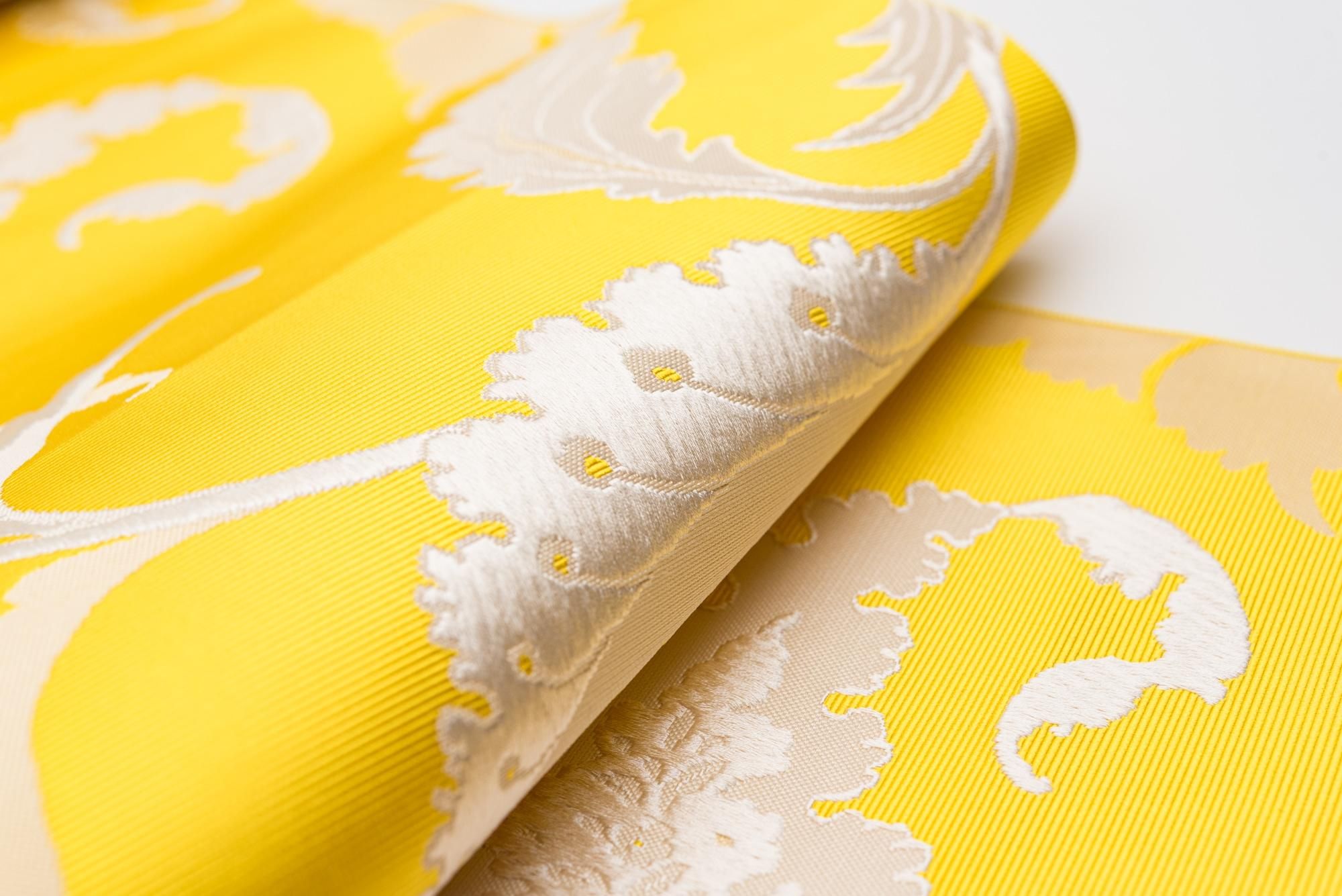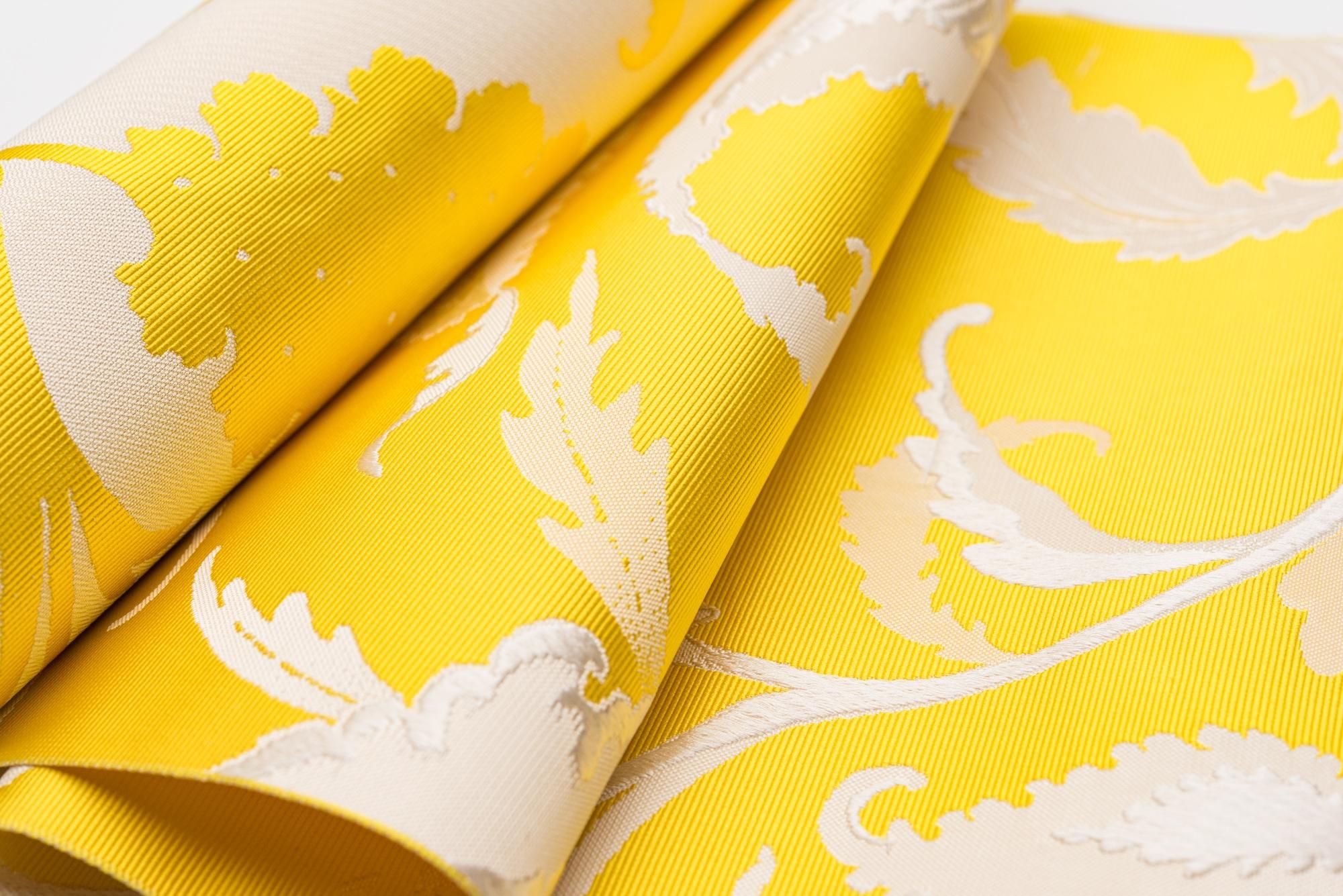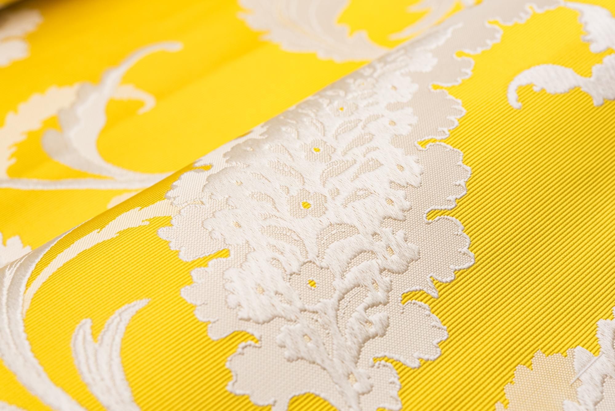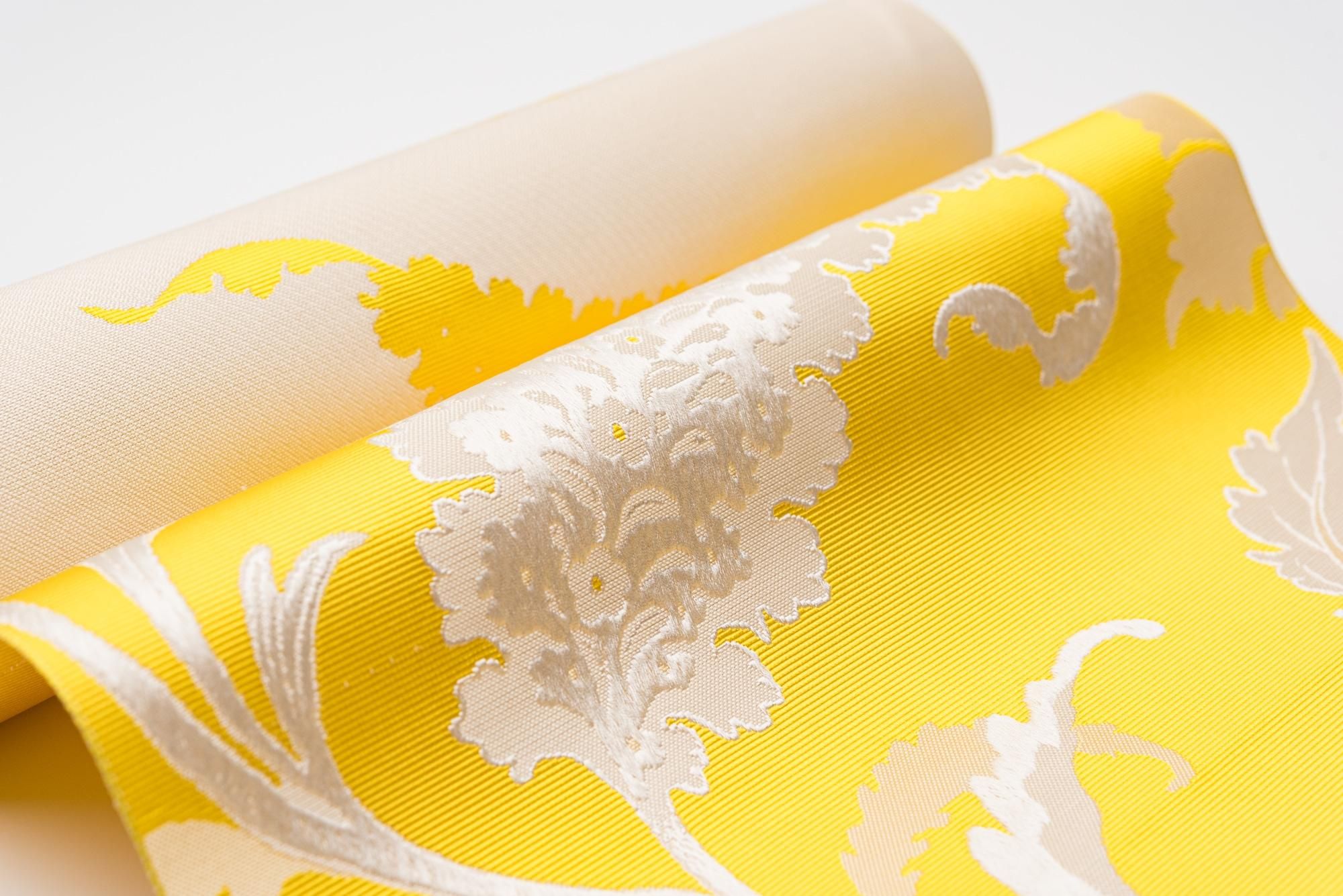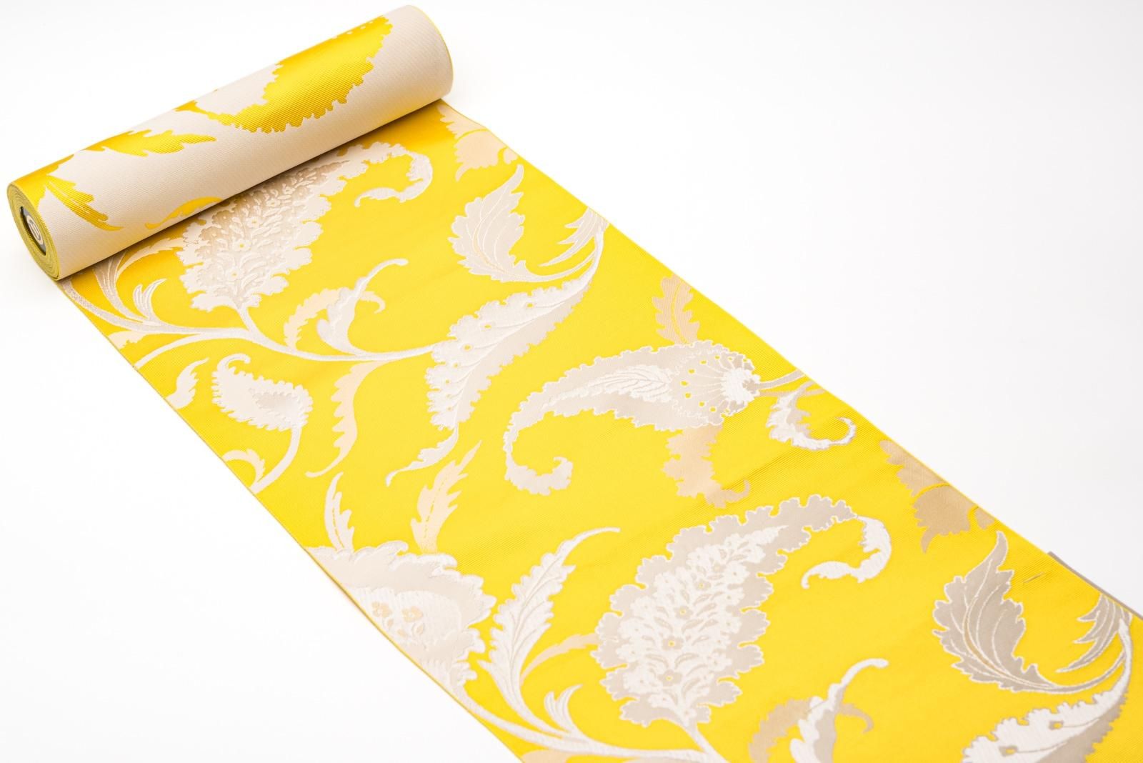 【お仕立て付き】新品 本場筑前博多織 紋八寸 洋花繻朱子文様 葉紋 黄 の商品写真