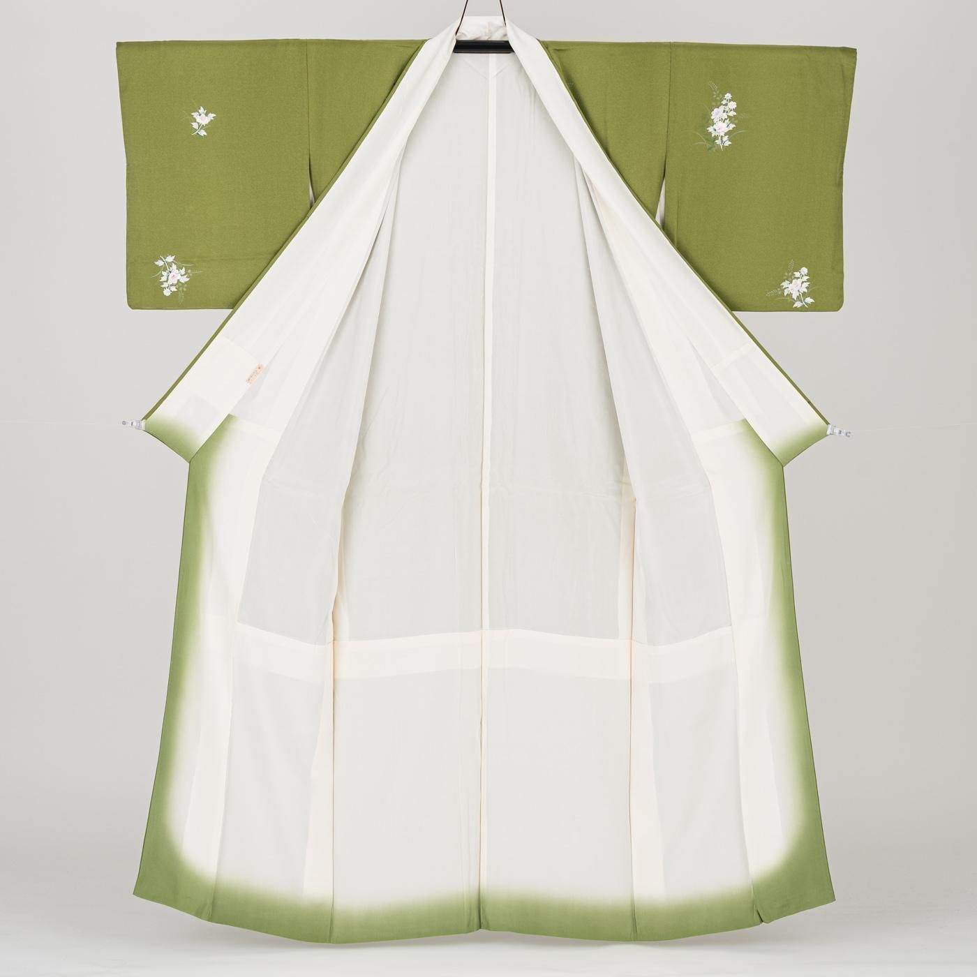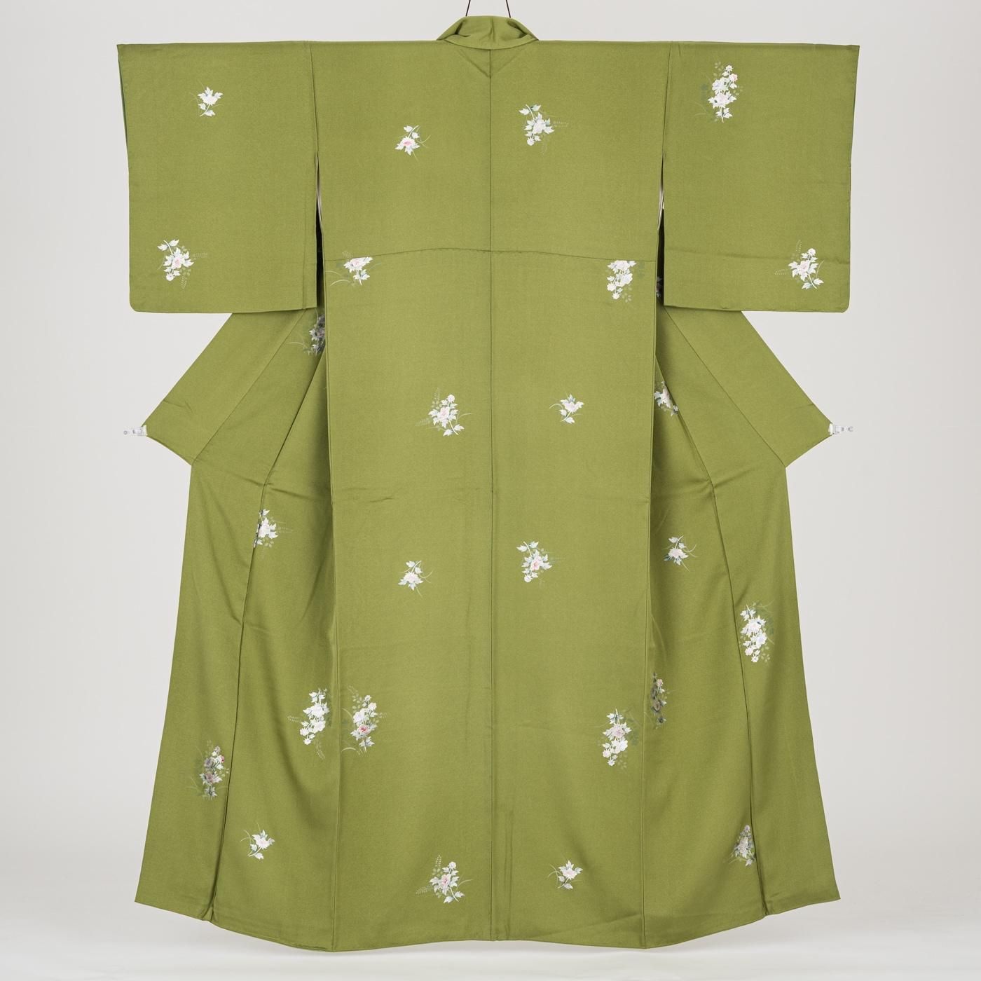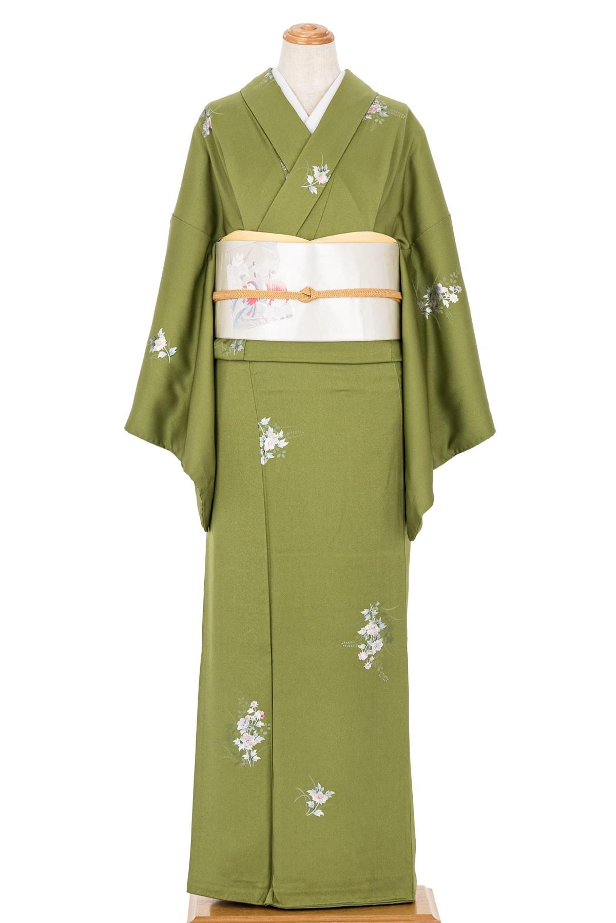 こっくりとした黄緑色の地に箔置きの柄がほのかに輝く控えめで愛らしいデザインです。