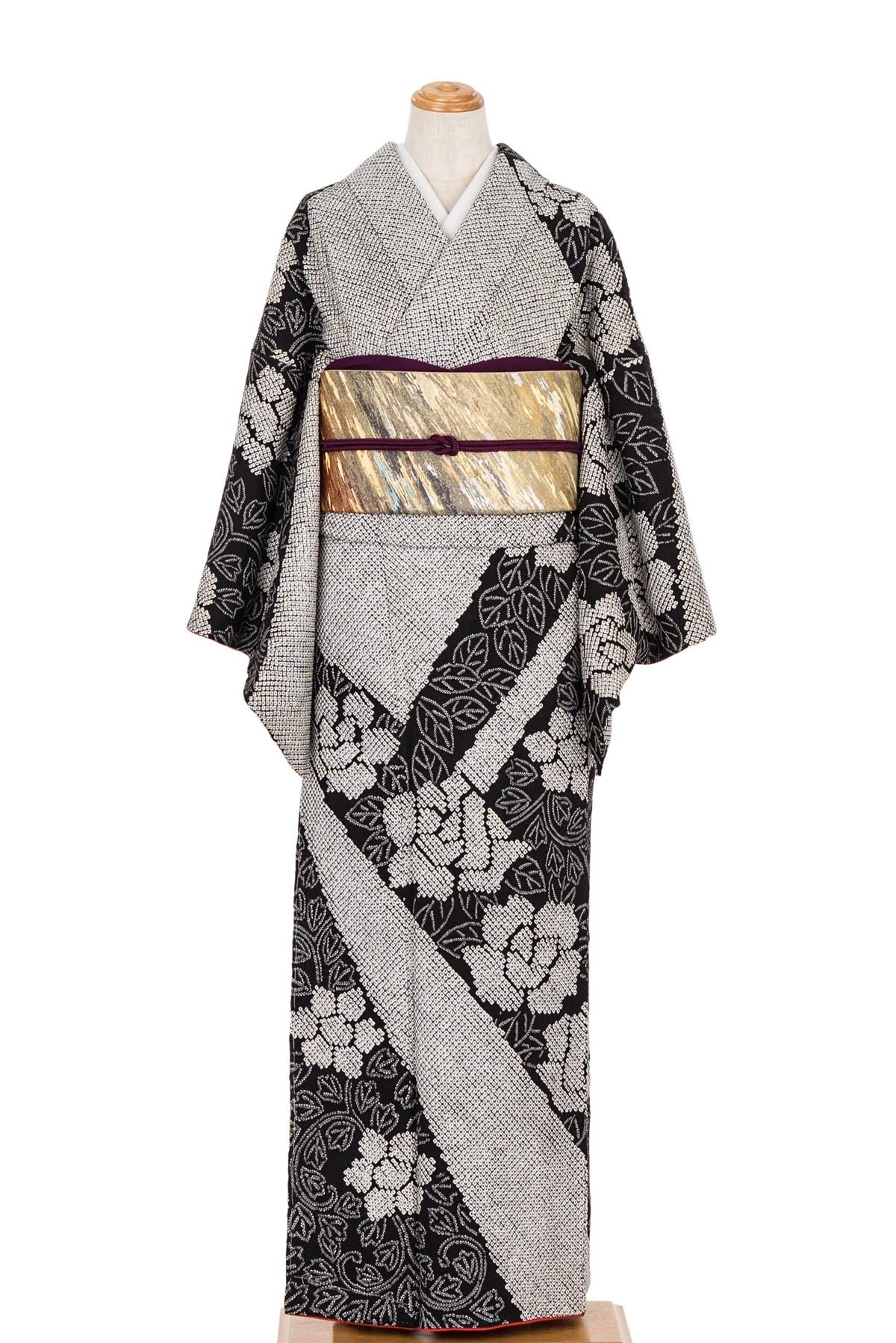 訪問着 総絞り 牡丹唐草