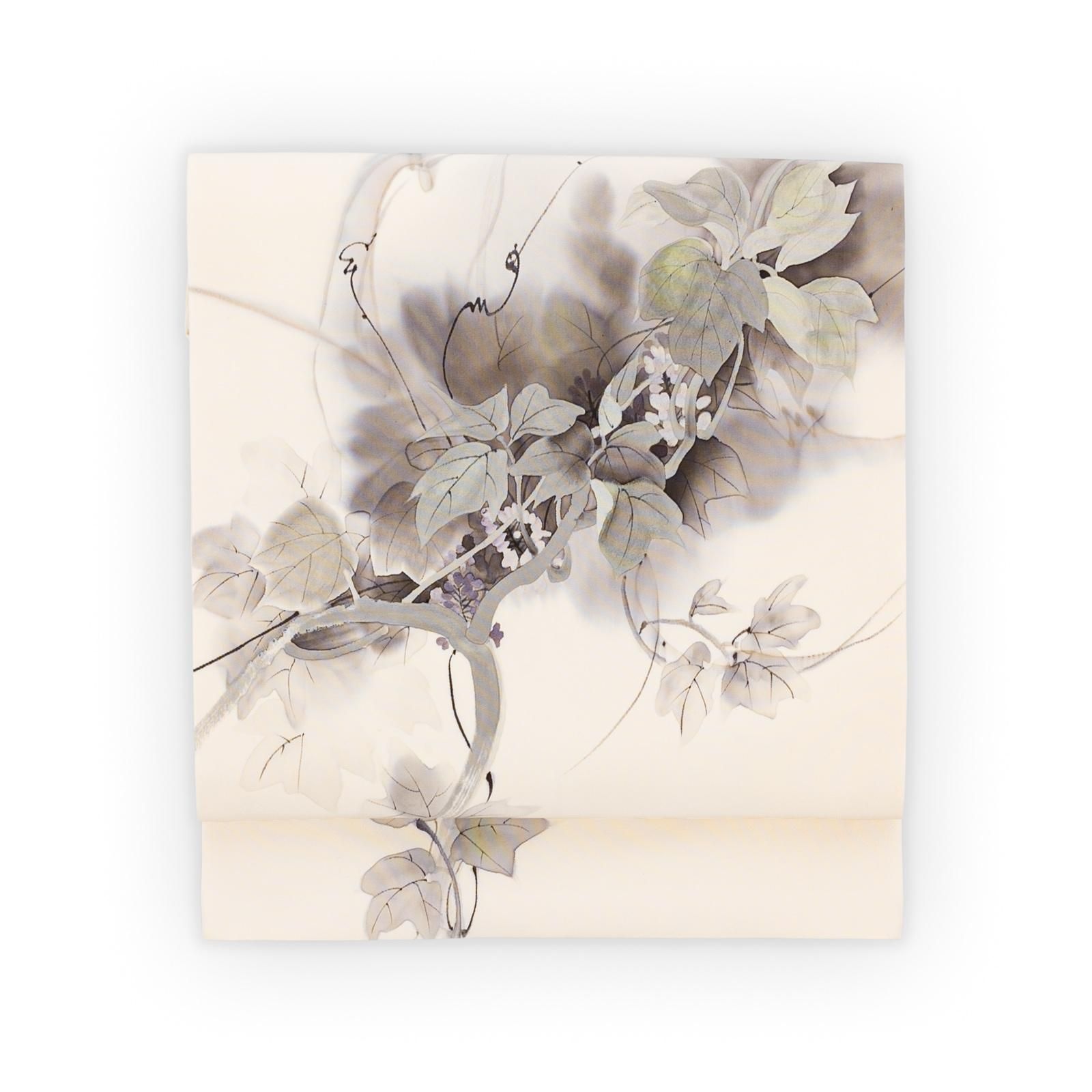 白地に葡萄を描いた塩瀬の九寸名古屋帯です。