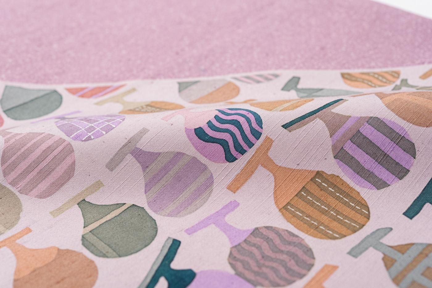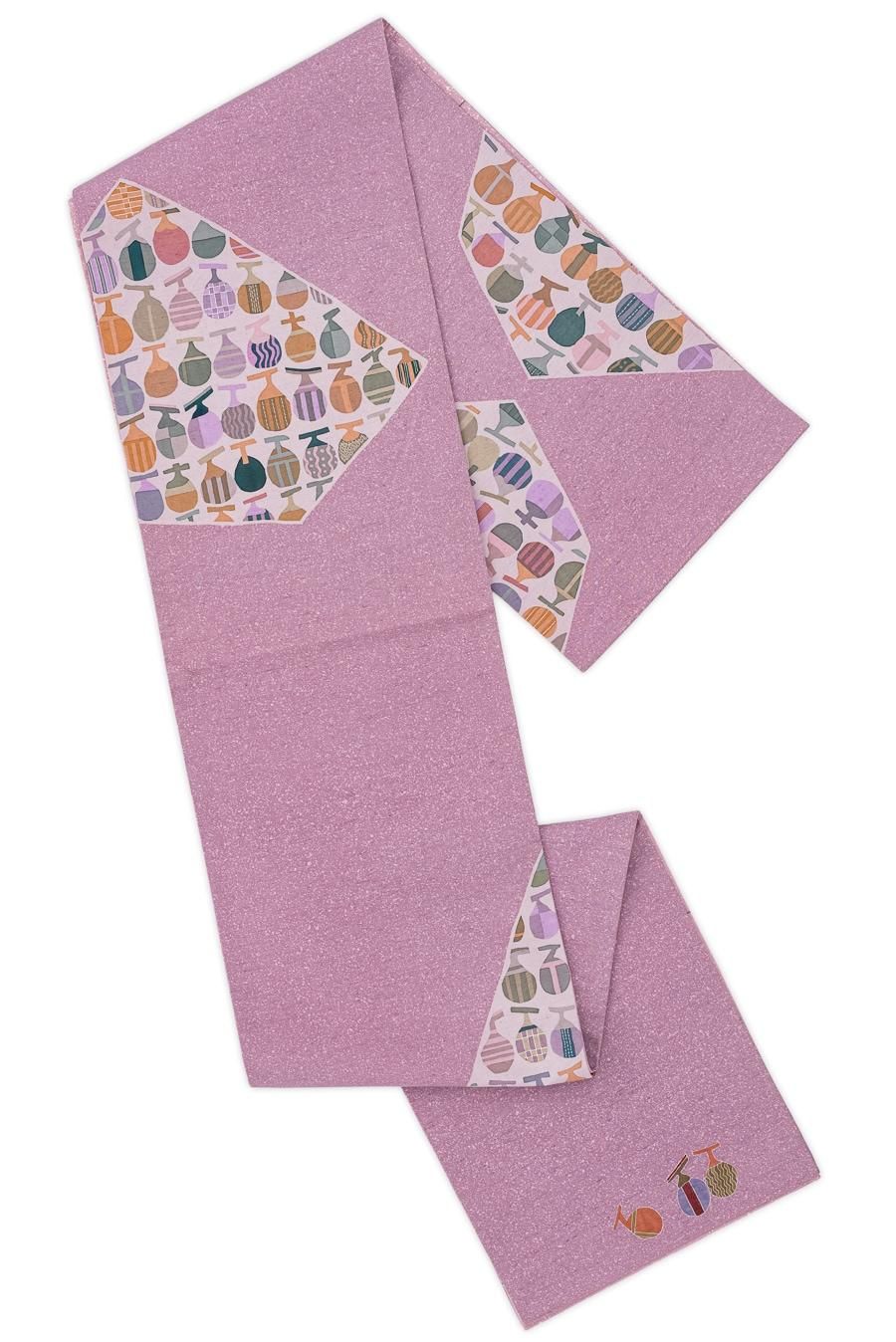 つるりとした紬地に果実模様を染めた洒落袋帯です。