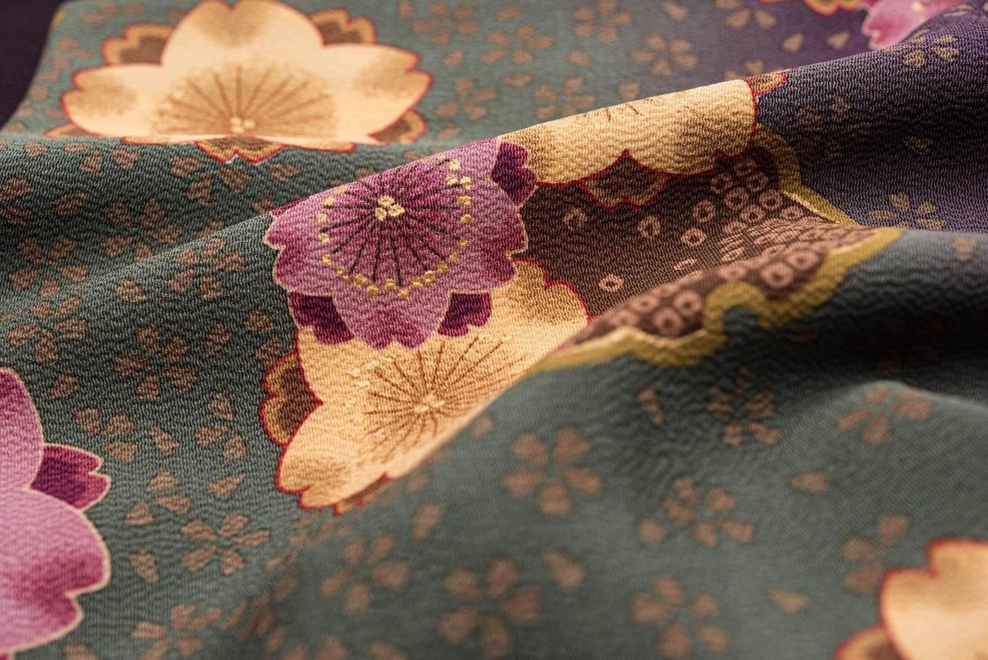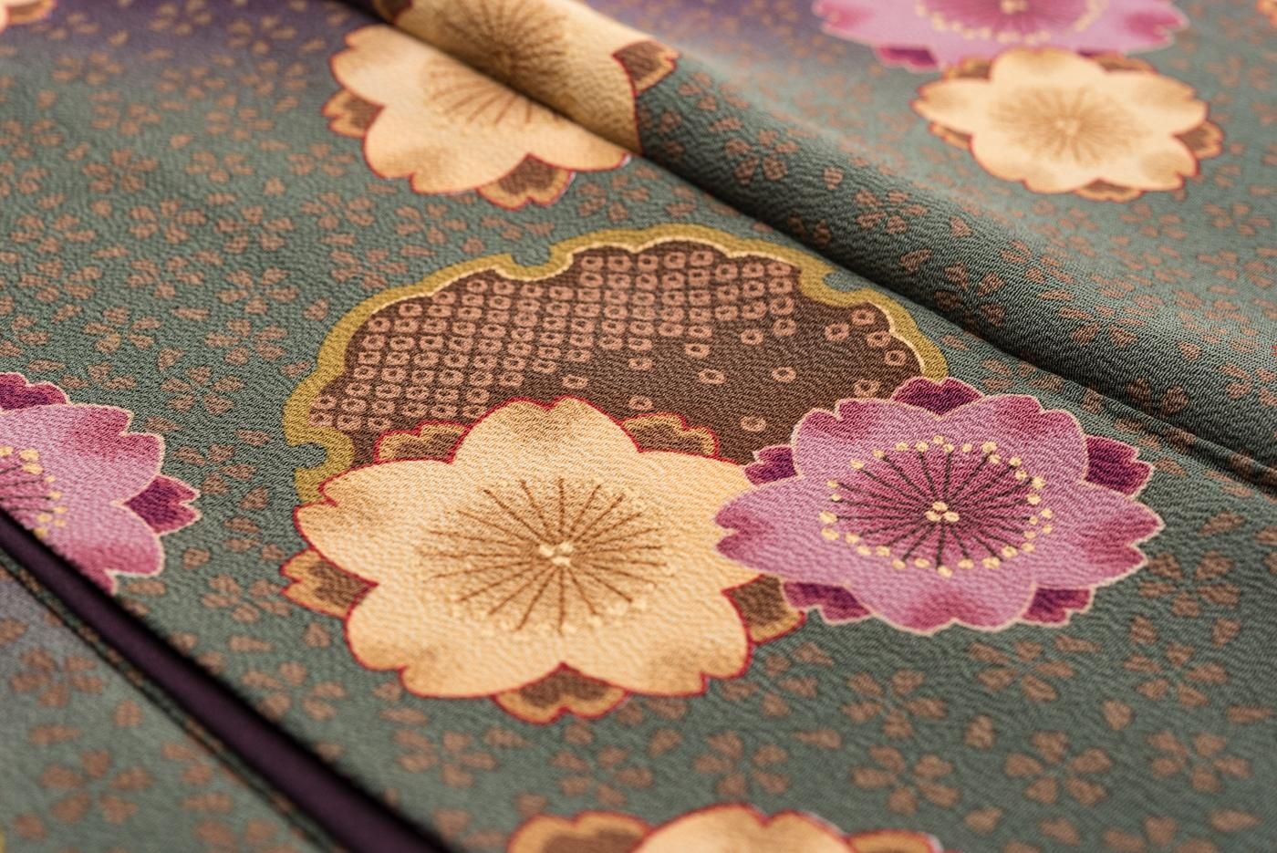 裾に向けて柄が大きくなるデザインは静やかでありながら愛らしさや華やかさも感じさせます。