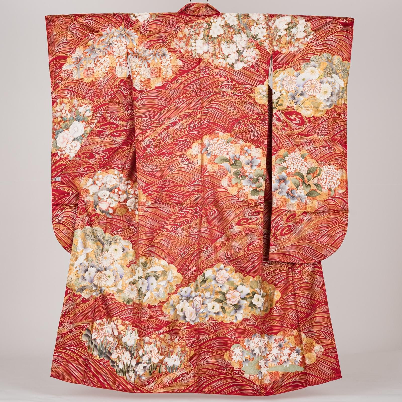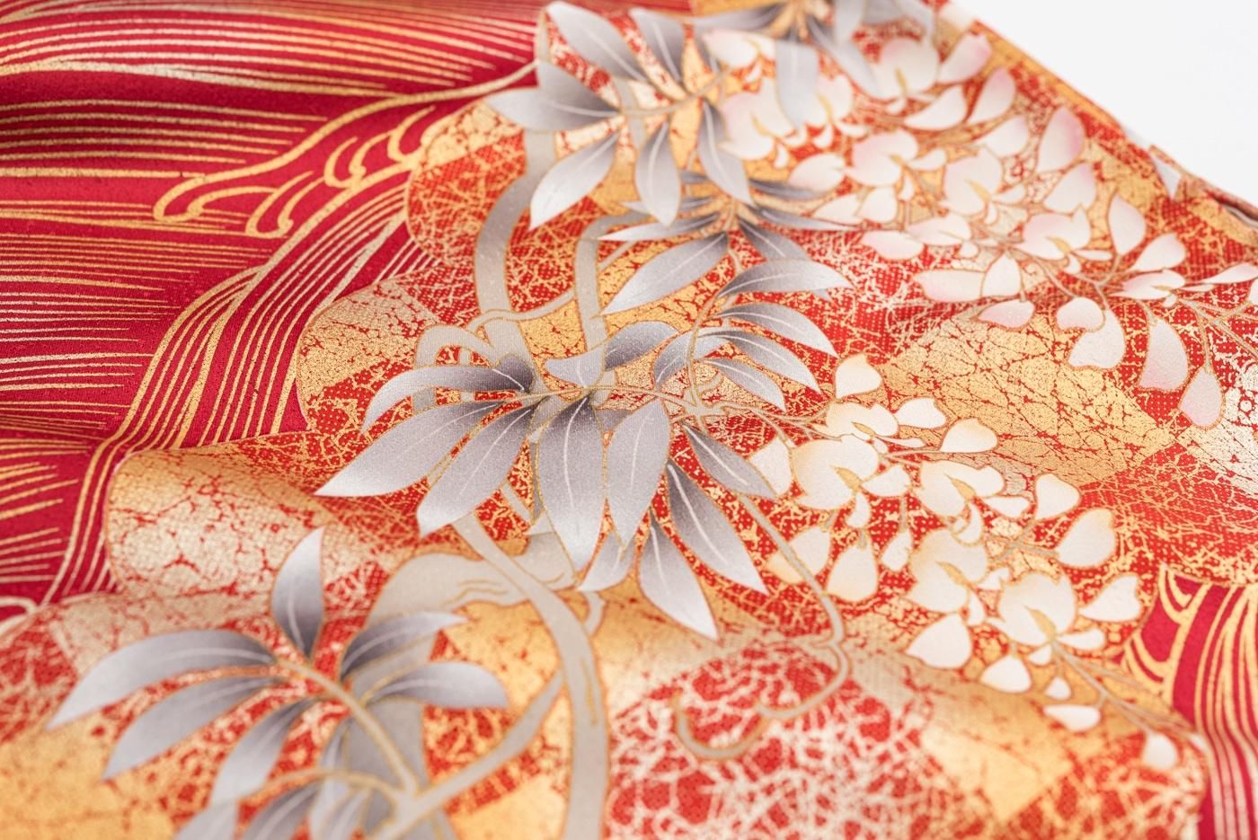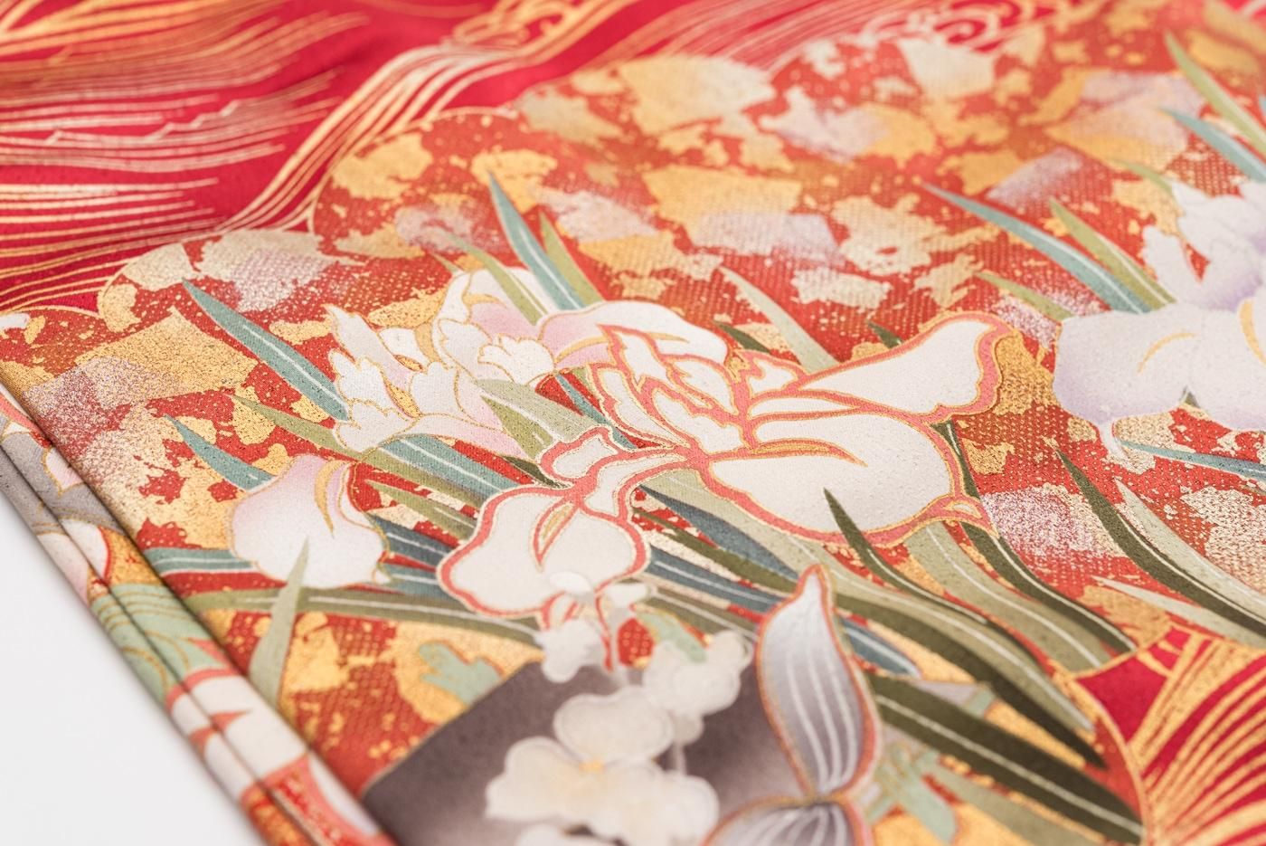 赤い地には金の流水がたっぷりと描かれており大変華やか。