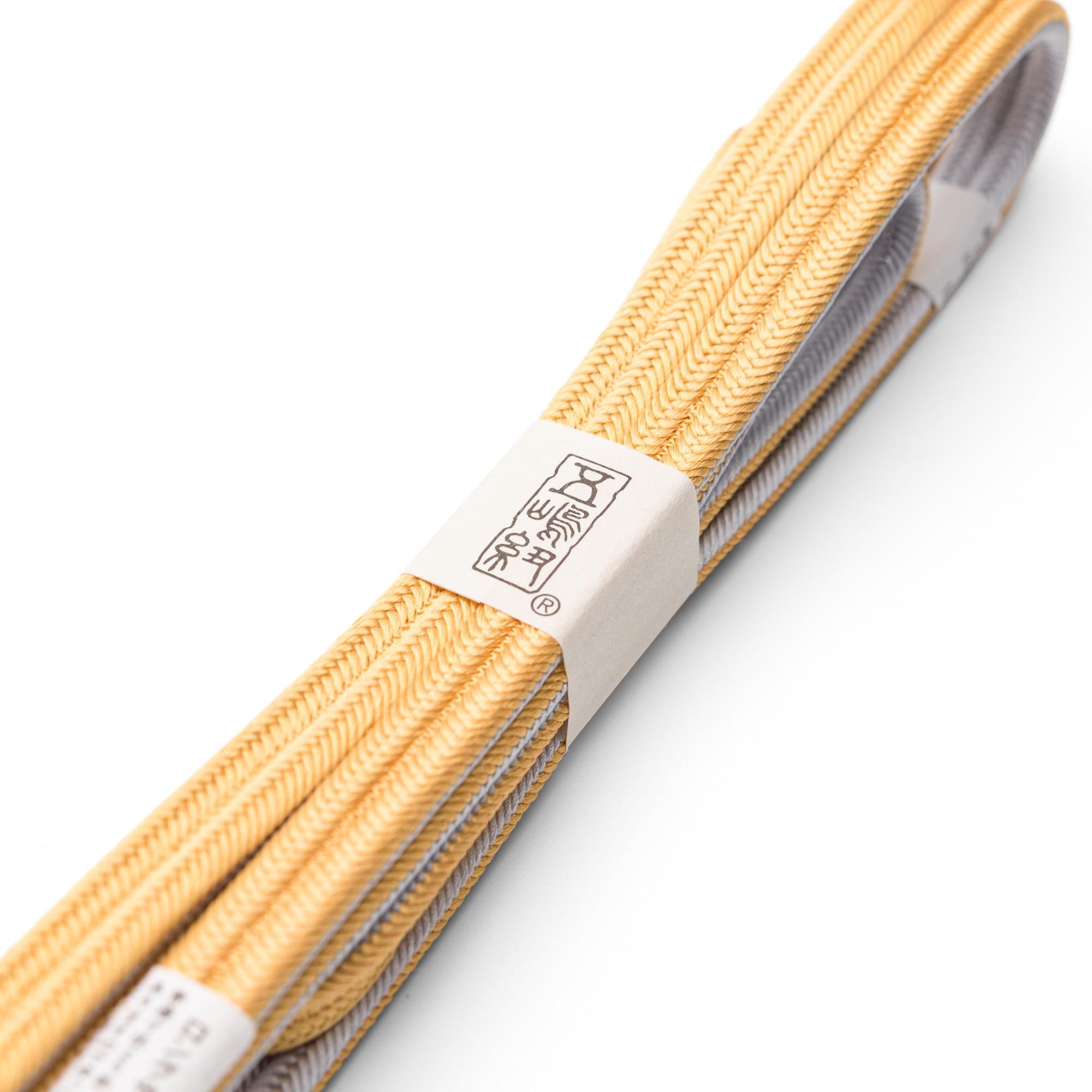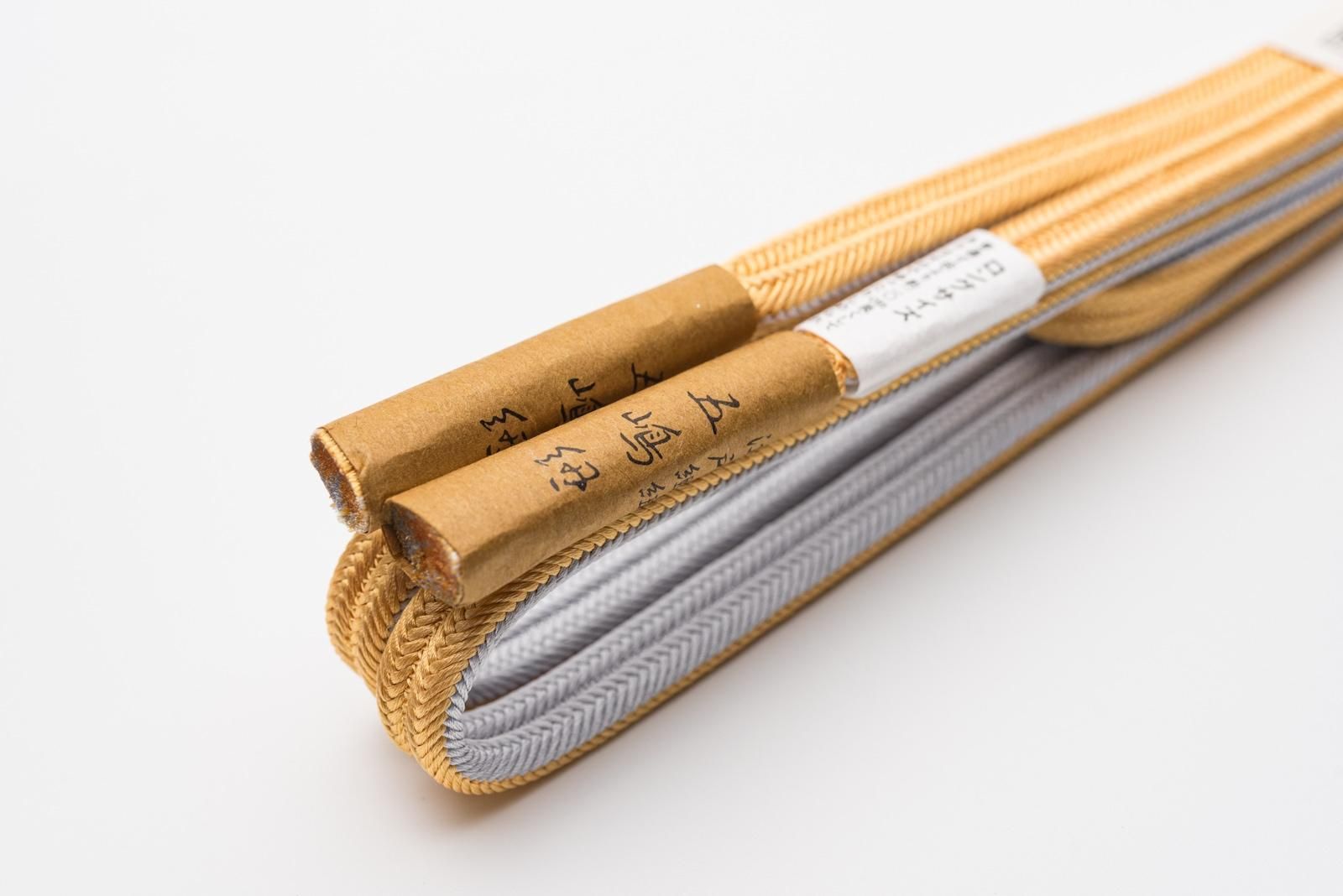しっかりと打ち込まれた五嶋紐の帯締めは、適度なしなやかさがあり、締めるたびにきゅっきゅと心地よい音が鳴ります。