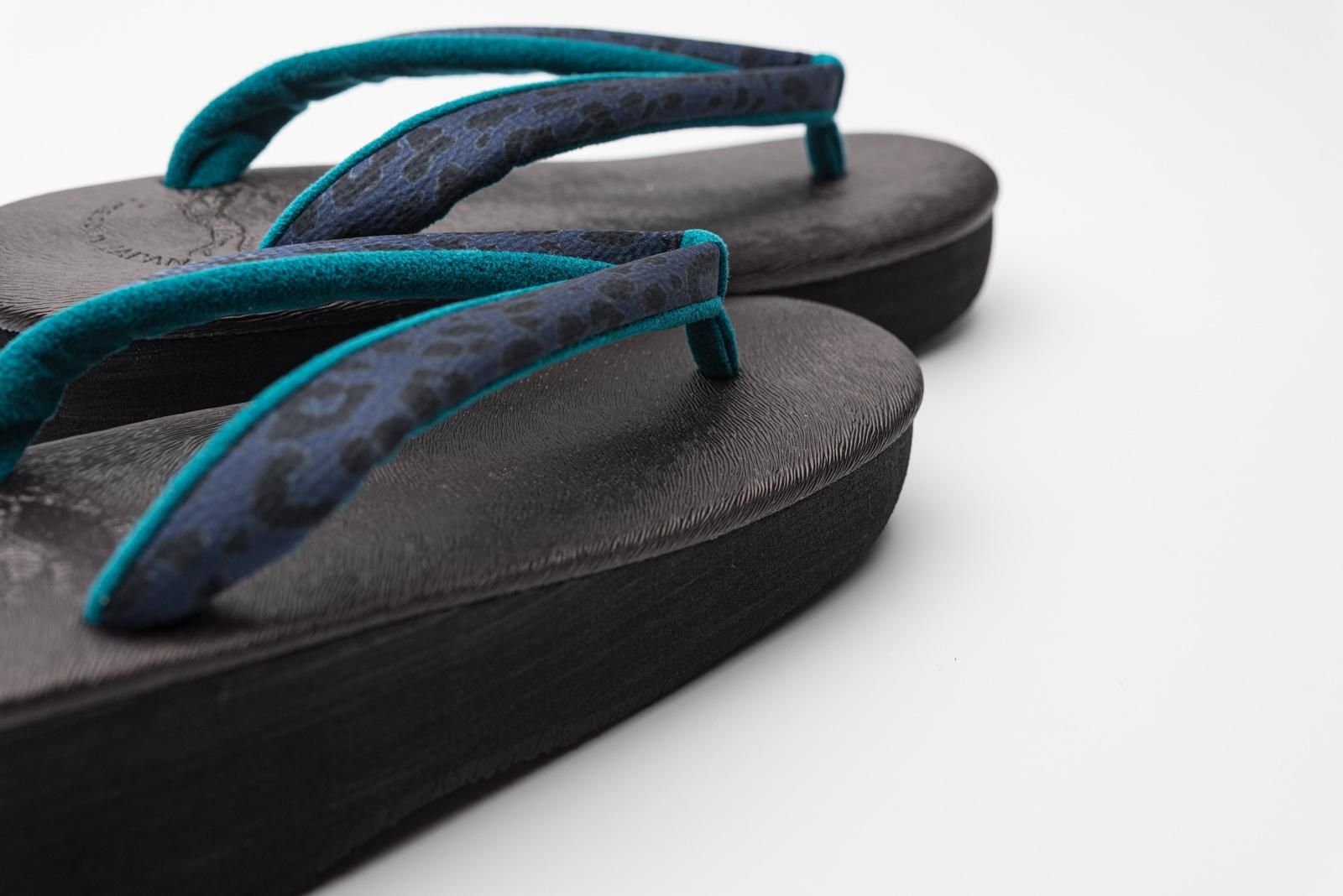 前坪と鼻緒裏に合わせたピーコックブルーがぱっと映えてとても印象的です。