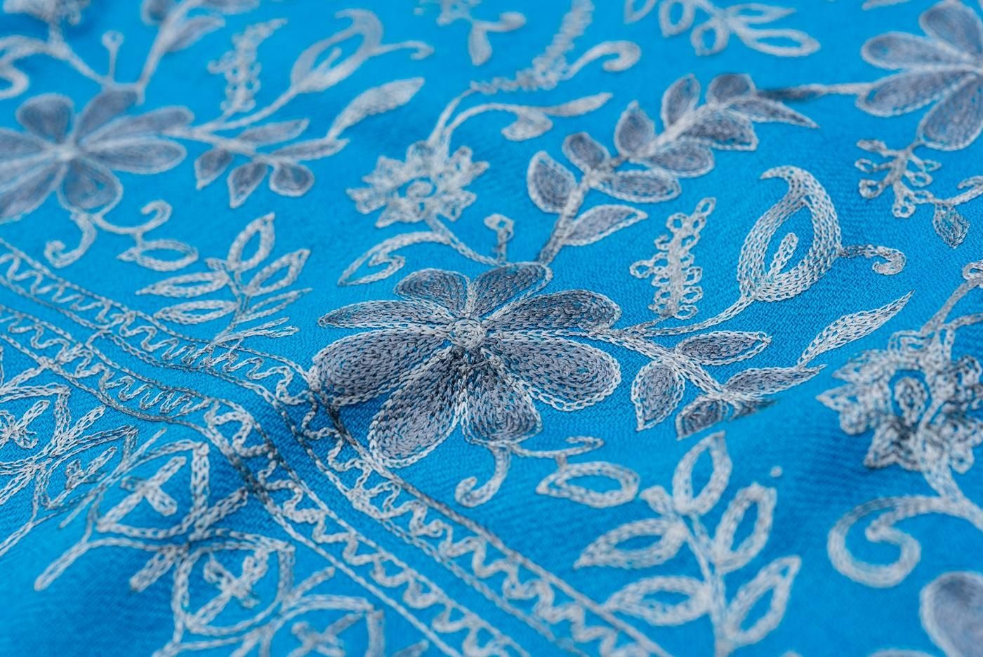 ウール100%大判ショール カシミール刺繍 ターコイズ