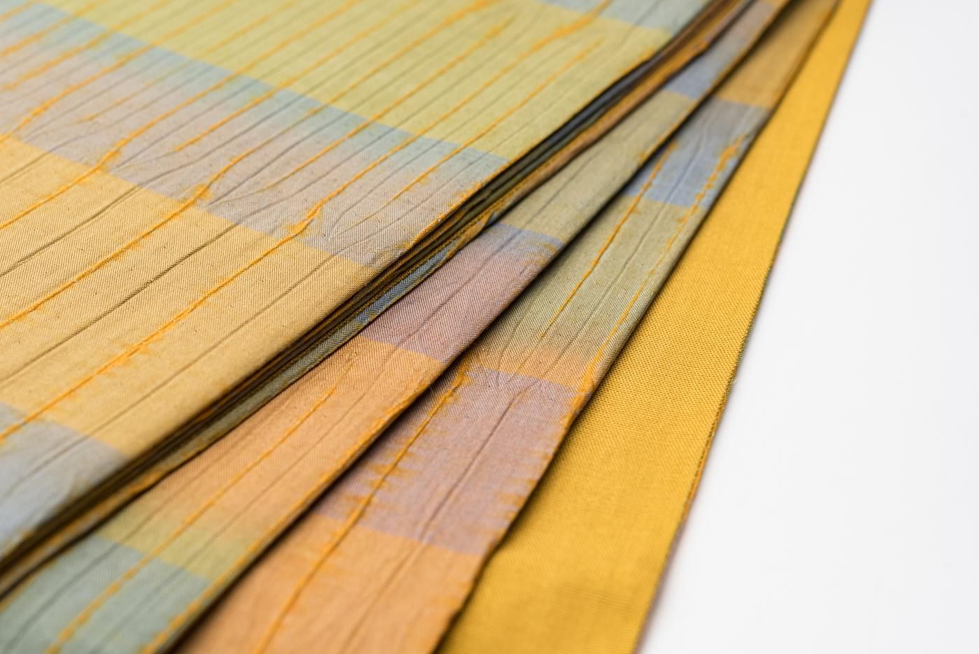 縫い締め絞りの緩やかな縞模様が美しいアクセントになっていますね。